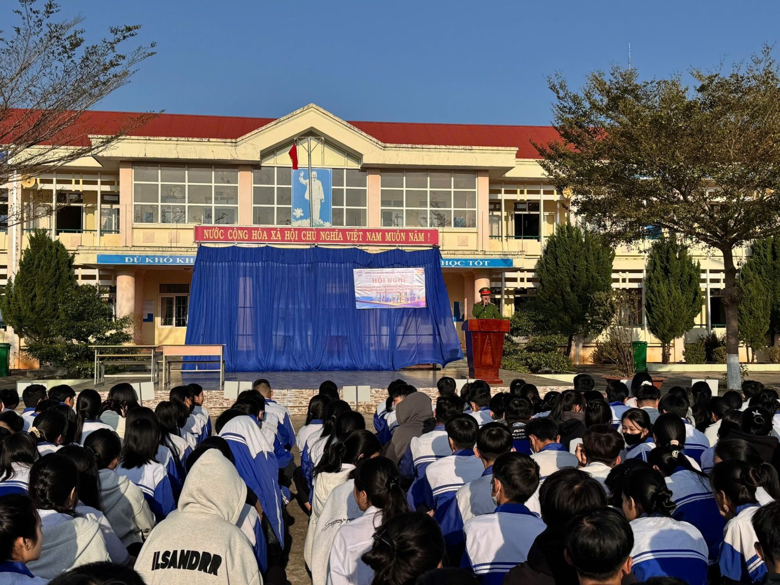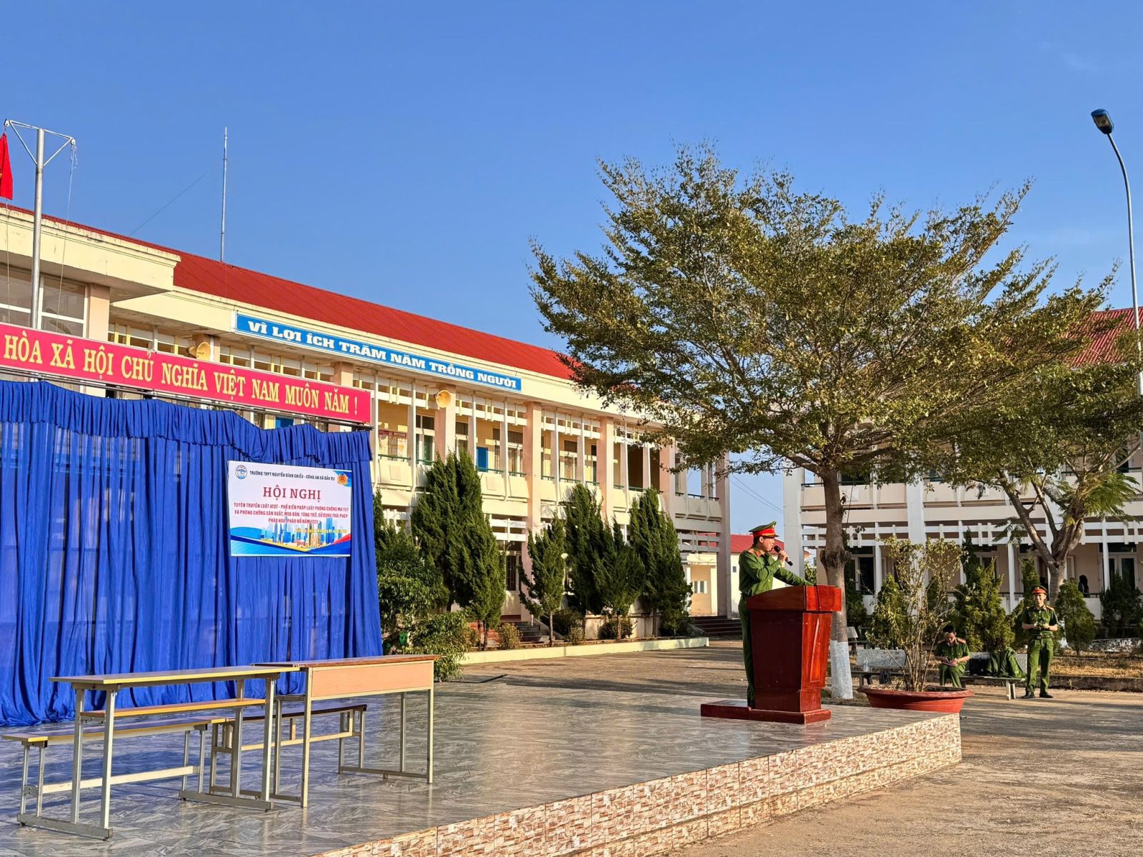Nhằm nâng cao nhận thức pháp luật và đảm bảo an toàn trong dịp Tết Nguyên đán Ất Tỵ 2025, sáng ngày 20/01/2025, trong buổi sinh hoạt đầu tuần, Trường THCS Nguyễn Đình Chiểu đã phối hợp với Công an xã Đắk Ru tổ chức buổi tuyên truyền về an toàn giao thông (ATGT), phòng chống ma túy, và phòng chống việc sản xuất, mua bán, tàng trữ, sử dụng trái phép pháo hoa, pháo nổ.